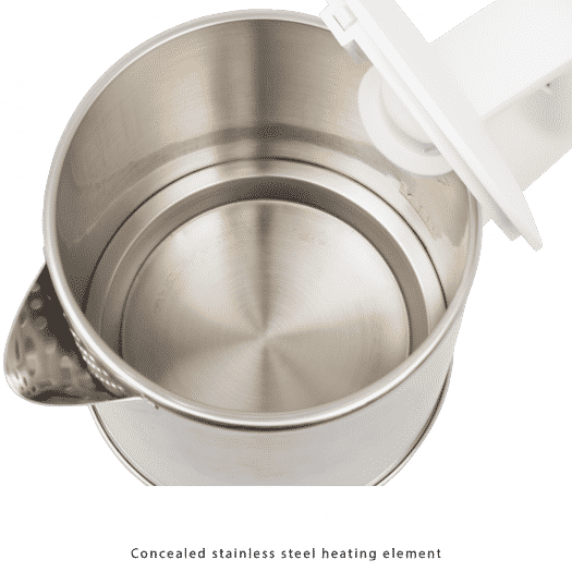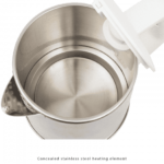 Préparez toutes vos boissons chaudes préférées et plus encore avec la Bouilloire Electrique CLATRONIC 1.5 L. Cette bouilloire a un design élégant avec une finition en acier inoxydable qui a fière allure dans toute cuisine. Faites chauffer de l’eau sans souci grâce à la fonction d’arrêt automatique. Le filtre amovible est lavable facilite le nettoyage. De même évite les dégâts avec le bec anti-goutte. Ce petit électroménager à un Litre fournit de l’eau chaude rapide pour toutes vos boissons préférées dans un format portable pratique. Idéal pour la maison, le bureau, la grotte de l’homme ou la remise. Avec son élément chauffant en acier inoxydable dissimulé, son voyant d’alimentation et son couvercle de verrouillage de sécurité, la bouilloire assure que les utilisateurs seront en sécurité, et la protection anti-ébullition signifie qu’elle s’éteindra automatiquement lorsque l’eau bout. De plus soulève également la base chauffante pour servir sans cordon.