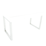 - Socle en acier et plateau en bois.