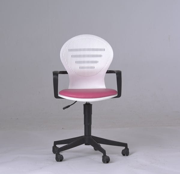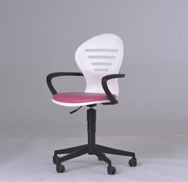 Chaise tournante en polypropylène avec assise en skaï et réglage de hauteurs.