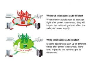 Lorsque l’alimentation est reprise après une panne de courant, les unités de l’ensemble du bâtiment ne démarreront pas au même instant . Ceci est pour éviter l’impact sur le réseau électrique. (Convient pour les projets d’ingénierie)