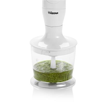 Ensemble mixeur plongeant complet avec 2 vitesses. L’appareil dispose d’un pied en inox amovible facile à nettoyer. L’ensemble comprend un hachoir doté de lames inox, un batteur, et un bol mesureur de 500ml doté d’un bec verseur.
