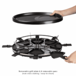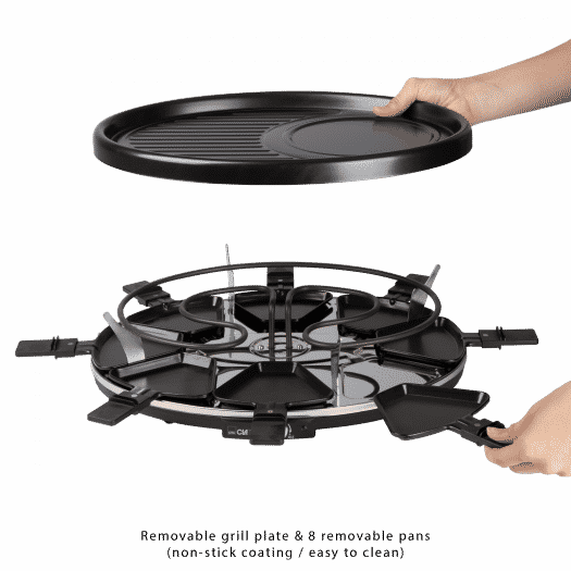 Les nouvelles grilles en acier sont plus durables et ont une meilleure apparence dans la cuisine. En outre, le Gril à raclette Clatronic est élégant et de taille plus compacte. Les assiettes de grillades en 8 portions rendront les repas agréables pour toute la famille. Les plaques antiadhésives faciles à nettoyer, le plateau de récupération et le rangement vertical en font un gril santé facile à nettoyer et à ranger.