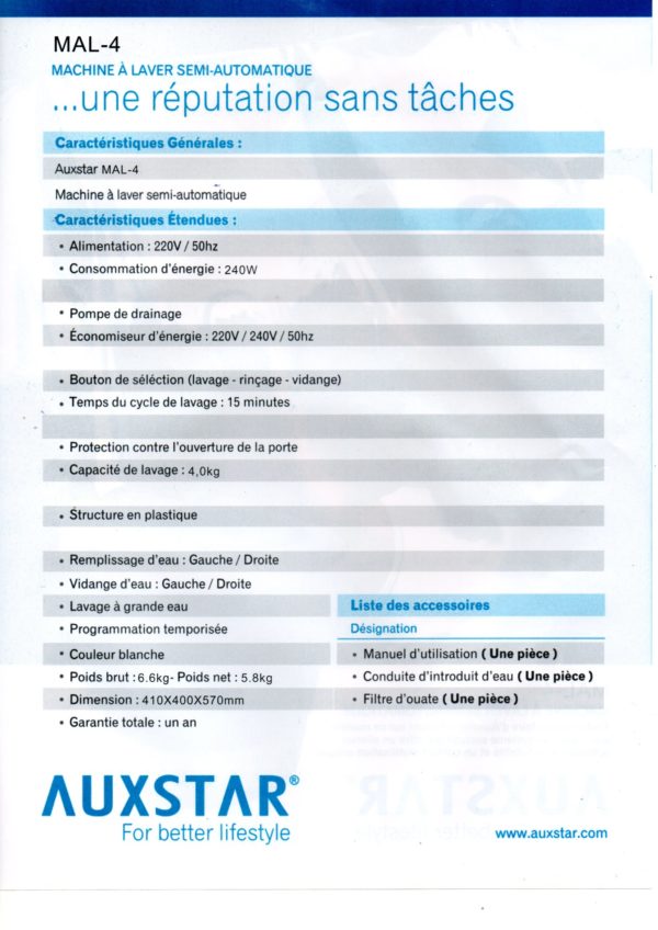 Machine à laver Semi Automatique AuxStar 4kg Bleu