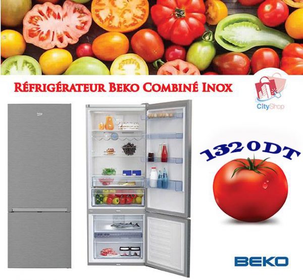 Réfrigérateur Beko Combiné Néo Frost inox 340L