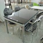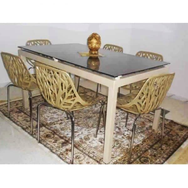 Soyez le premier à laisser votre avis sur “Table de cuisine agatha 150x90cm vitre coloré + 6 chaises jungle”