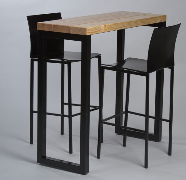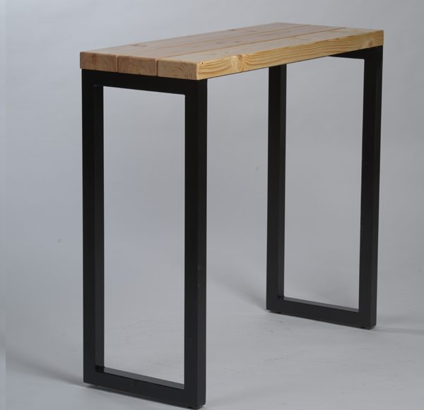 La table HAUTE industrielle est fabriquée en Bois avec socle en acier peinture epoxy donc elle est robuste et stable .