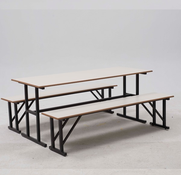 Table de réfectoire ou de cantine, spécialement conçues pour être robuste et destinée à l’aménagement des réfectoires .