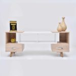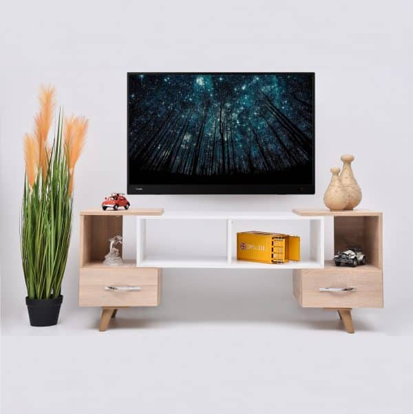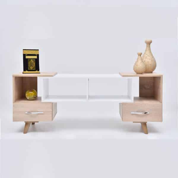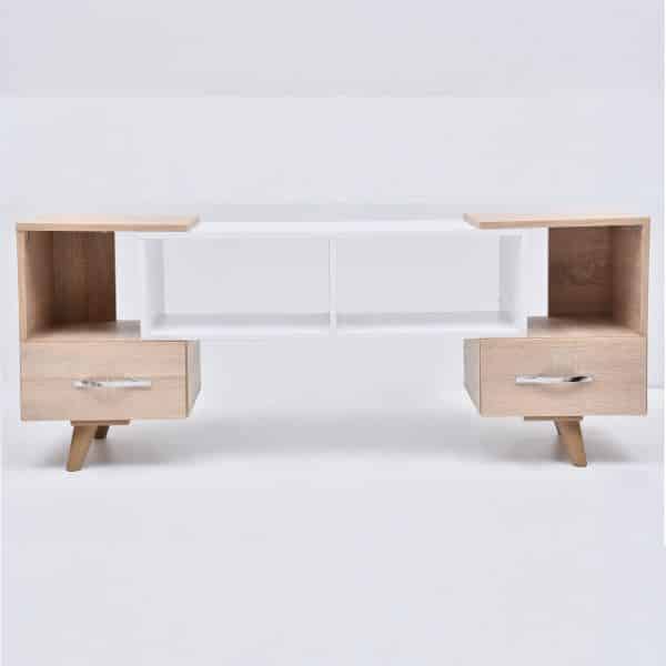 Recevoir n’a jamais été aussi facile ou aussi beau, avec la Table TV Zara, une pièce avant-gardiste et moderne de conception simple, mais complètement fonctionnelle et transparente dans n’importe quel espace. Avec deux étagères à l’extrémité dissimulées parfaites pour ranger tous les accessoires multimédias, l’électronique, les livres et au-delà. Et deux cadres ouverts centrals pour présenter un lecteur DVD, des livres. Enplus deux tiroir en bas au bord de table basse pour conserver les articles préférés et vos papiers. Définissez des accents décoratifs, des photos de famille encadrées ou des jardinières sur sa base pour lier l’espace ensemble et invitez vos amis et votre famille pour une grande soirée cinéma.