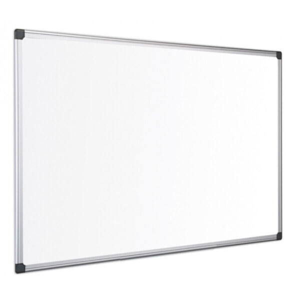 TABLEAU BLANC MAGNÉTIQUE 100 X 200 CM avec Cadre fin en aluminium anodisé . Repose-stylo en plastique qui se clipse au cadre dans n’importe quelle position – Fixations au mur fournies – Surface magnétique revêtue d’acier.