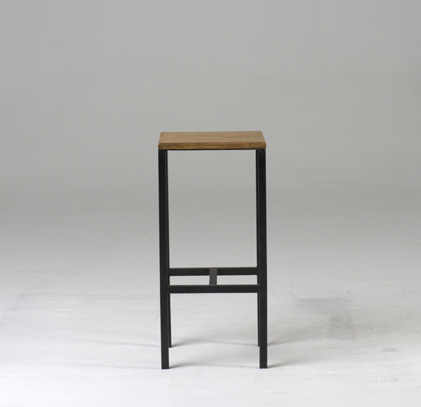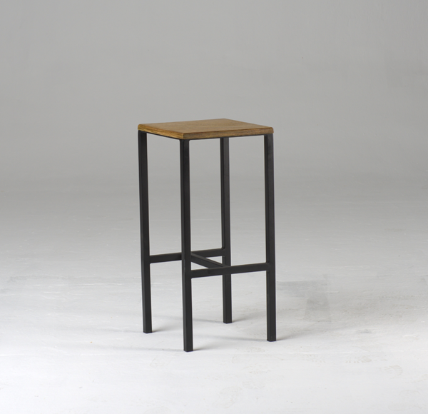 - Tabouret en bois avec socle en acier peint